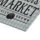Bauernhof / Land-Wohngestaltung mit "Farmer's Market - Locally Grown" schwarzer Schablonenüberlagerung auf pastellgrauem und weißem Gingham mit Schachbrettmuster