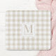 Maßgeschneidertes modernes Glasschneidebrett im Bauernstil mit personalisiertem Monogramm und Familienname auf beige Büffel Karo/kariertem Muster.