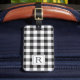 Individuell gestaltete Gepäckmarke für Monogramm mit personalisiertem Monogramm und Familienname auf einem schwarz-weißen Büffel-Karo/kariert/Gingham-Karo vorne, mit bearbeitbaren Kontaktinformationen auf der Rückseite. Holiday/Christmas personalisierte Geschenkideen. Geschenke für sie. Weihnachts-Strumpf-Geschenkideen. Mit Monogramm Geschenke.