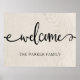 Dieses rustikale und trendige Bauernhofposter besticht durch ein Imitat mit weißem Holzaussehen und das Wort "willkommen" in einem Wirblen Schriftart. Personalisieren Sie Ihre Daten mit Ihrem Familiennamen.
