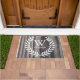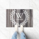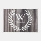 Der bedruckte, vergoldete, graue Holzhintergrund mit Silhouette aus weißem Laurels und dem personalisierten Familiennamen und dem Monogramm in Weiß. Shabby Chic sah noch nie so ordentlich aus. Mit diesem eleganten Landhausstil lassen Sie Ihre Vorder-Veranda höher schlagen.