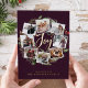 Ein festliches Urlaubskartendesign mit acht Fotos, die in einem runden Kranzgeflecht mit grünem Blattwerk, Pinienbäumen und roten Heiligbeeren auf dunklem Beerenhintergrund angeordnet sind. "Joy" erscheint in der Mitte in festlicher Goldfolie handgeschriebene Schriftzeichen-Typografie. Personalisieren Sie dieses einzigartige Foto Collage Design mit Ihren individuellen Weihnachtsgrüßen und Namen am Ende.