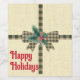Auf den hübschen Flaschenplakaten im Landhausstil finden Sie Vintages kariertes Band und Bogen mit Winterkiefer und Beerendekor auf cremefarbenem Oberteil. Grußtext "Happy Holidays"