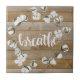 Bauernhaus Inspiration II von Jennifer Paxton Parker. Das Wort "atmen" in kursiver Form neben einem Baumwollkranz und Holzplankenhintergrund.