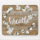 Bauernhaus Inspiration II von Jennifer Paxton Parker. Das Wort "atmen" in kursiver Form neben einem Baumwollkranz und Holzplankenhintergrund.