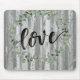 Bauernhaus Inspiration I von Jennifer Paxton Parker. Verfügt über "Liebe" in Skripten mit einem schönen grünen Kranz und Not leidenden Holzpaneelen.