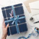 Bauernhaus dunkelblau / marineblau und off weiß (wie eine antike weiße Farbe) kariertes Muster niedliches Gitter bestehend aus einfachen rustikalen handgedrossenen, kreuz, horizontal und vertikal Bänder Muster. Bauernhof Land rustikale Ferien Muster Geschenkpapier verpackt. Ideal für Weihnachten und die Ferienzeit.