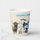 Jungs Geburtstagsparty-Tassen. Farm themed Design mit Barnyard Tiere und blaues Traktor-Bild, das um Tassen, die in zwei Größen kommen umwickelt. Geben Sie Ihre Textauswahl in groben, blauen Schriftzeichen oben ein. Cups können auch mit Deckel gekauft werden.