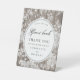 Rustikale Hochzeiten unterschreiben Sie bitte unser Gästebuchschild mit Vintagem Ambiente, das auf grauen, verwitterten Holzplanken mit romantischer Blume gedruckt ist.