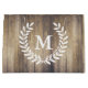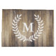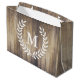 Geschenktasche im Bauernstil mit Stallholzplanken und weißen Lorbeeren, die einen personalisierten Monogramm-Anfangsbuchstaben abgeben.
