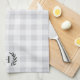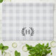 Mit Monogramm Küchenhandtücher im Bauernstil, die Ihren Single in klassischer Schrift mit Lorbeer-Akzenten auf einem tonalen Büffel-karierten Hintergrund in eleganten, neutralen Farben kennzeichnen.
