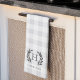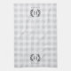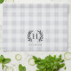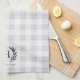 Mit Monogramm Küchenhandtücher im Bauernhausstil mit Familienname und Single-Initial-Monogramm in klassischer Schrift mit Laurel Blatt Akzenten, auf einem tonalen Büffel karierter Hintergrund in eleganten, neutralen Farben.