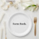 Laden Sie oben Ihre Platte mit lokaler Nahrung. Text liest, "bewirtschaften frisches." Ideal für Bauersmärkte und lokale Restaurants.