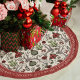 Der elegante personalisierte Weihnachtsbaumrock im Bauernhof besticht durch ein handgezeichnet Hirschgeflecht in Rot- und Cremetöcken mit festlichen Poinsettia-Blume, Kakteen, heiligen und roten Winterbeeren, die alle auf einem eleganten cremefarbenen Hintergrund und einer roten Grenze stehen.