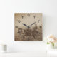 Bauernjunge und antiker Traktor braun Quadratische Wanduhr