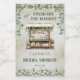 Schöner Wald und Salbei grünen Eukalyptus und Boutique Farmer's Market "She's Fresh Off the Market" Brautparty Design. Rustikaler, altertümlicher Vordergrund kombiniert mit dem grünen Holzständer und dem umgebenden Eukalyptus erinnert an einen offenen italienischen oder landschaftlichen Marktplatz.