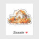 Ein Niedlicher Herbstaufkleber mit Haus, Kinder spielen, Kürbisse und farbenfrohe Herbstblätter.