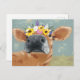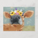 Bauernspass - Kuh mit Blume Crown Postkarte