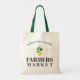 Diese Taschentasche kennzeichnet eine vibrierende gelbe Zitrone, die zusammen mit einer Stelle für Ihren lokalen Bauersmarkt-Stadtnamen zentriert wird.
