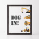 Baufahrzeug Geburtsgraben in der Lebensmittelsigna Poster