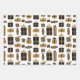 Baugeschenke und Weihnachtssterne Muster Packpapier Blatt aus Ricaso - in Gold, Schwarz und Weiß entworfen.