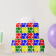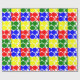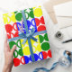 Dieses Verpackungspapier hat ein Bauhaus-Design aus sich wiederholenden Kreisen und Halbkreisen in rot, grün, blau und gelb. Wie dieses Design, aber wollte verschiedene Farben? Nachricht.