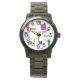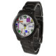 Diese Damenuhr hat ein Bauhaus-Design von Linien, die vertikal und horizontal verlaufen, um ein Raster mit Quadraten, Rechtecken, Dreiecken und Kreisen zu bilden, die um das Raster angeordnet sind. Wenn Ihnen das Design gefällt, aber andere Farben bevorzugen, dann schreiben Sie mir.