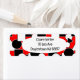 Diese Rücksendeadressen-Aufkleber haben ein Bauhaus-Design aus Dreiecken, Kreisen, Rechtecken und Pentagonen in Schwarz-Weiß auf einem roten Feld.