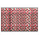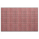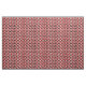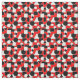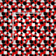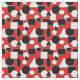 Dieser Stoff hat ein Bauhaus-Design aus Dreiecken, Kreisen, Rechtecken und Pentagons in schwarz-weiß auf einem Feld rot.