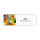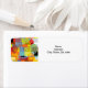 Dieses Adressetikett hat ein Bauhaus-Design mit horizontalen Farbstreifen und überlagerten Formen, die oben platziert sind. Farbenfroh, mutig, lustig!