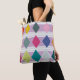 Diese Tasche hat ein Bauhaus-Design von Diamanten auf grauen Streifen mit einem Design, das wie Quilting aussehen soll.