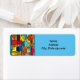 Diese Rücksendeadressen-Aufkleber haben ein inspiriertes Bauhaus-Design von Formen und Linien in verschiedenen Farbtönen der Mitte des Jahrhunderts.