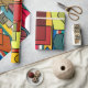 Dieses Verpackungspapier hat ein inspiriertes Bauhaus-Design von Formen und Linien in verschiedenen Farbtönen der Mitte des Jahrhunderts.