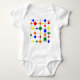 Dieser Babybodyanzug hat ein Bauhaus-Design mit roten, gelben, orangefarbenen, grünen und blauen Formen.