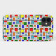 Dieses iPhone Gehäuse hat ein Bauhaus-Design aus einem Gitter mit Quadraten und Rechtecken in rot, grün, blau, orange, hellblau, gelb und rot.