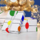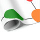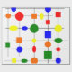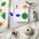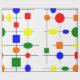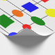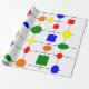 Dieses Umhüllungspapier hat ein Bauhaus-Design aus einem Gitter mit roten, gelben, orangefarbenen, grünen und blauen Formen.
