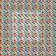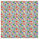Dieser Stoff hat ein Bauhaus-Design aus einem Gitter mit Quadraten und Rechtecken in rot, grün, blau, orange, hellblau, gelb und rot.