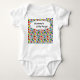 Dieser Baby Bodysuit hat ein Bauhaus-Design mit Quadraten und Rechtecken in Rot, Grün, Blau, Orange, Hellblau, Gelb und Rot.