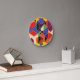 This clock has a Bauhaus design of overlapping hexagons of many colors.