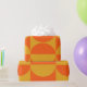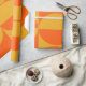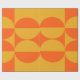Dieses Verpackungspapier hat ein Bauhaus-Design von Quadraten und Kreisen in Gelb und Orange.