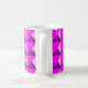 Diese Tasse hat ein Bauhaus-Design aus sich überlappenden Dreiecken in lila, magenta und rosa.