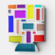 Dieser Dosenkühler hat ein Bauhaus-Design von Rechtecken in vielen Farben mit ihren schwarzen Konturen Offset.