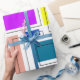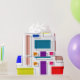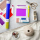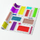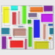 Dieses Verpackungspapier hat ein Bauhaus-Design von Rechtecken in vielen Farben mit ihren schwarzen Konturen Offset.
