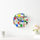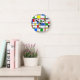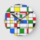 Diese Uhr hat ein Bauhaus-Design in Primärfarben, das wie Buntglas aussieht. Farbenfroh, mutig, lustig!