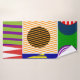 Dieses Handtuch-Set hat ein Bauhaus-Design von Formen und Linien, die eine Collage in Primär- und Sekundärfarben machen.