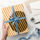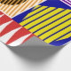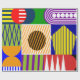 Dieses Verpackungspapier hat ein Bauhaus-Design von Formen und Linien, die eine Collage in Primär- und Sekundärfarben bilden.