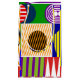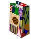 Diese Geschenktasche hat ein Bauhaus-Design von Formen und Linien, die eine Collage in Primär- und Sekundärfarben machen.