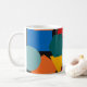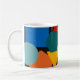 Diese Tasse hat ein Bauhaus-Design mit zufälligen Formen in Blau, aquamarin, Gelb, Rot und Orange.