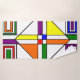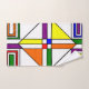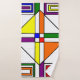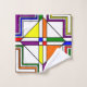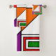 Dieses Handtuch-Set ist ein Bauhaus-Design aus Linien, Dreiecken, Diamanten und Quadraten, das ein farbiges Glas in Primär- und Sekundärfarben aussieht.