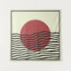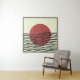 Minimalistische Bauhaus Wandkunst mit einer kühnen roten Sonne und fließenden schwarzen Wellen. Modern, abstrakt und perfekt für stilvolle Wohngestaltung.